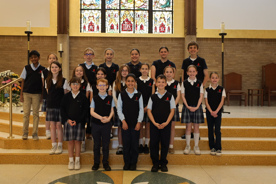 The Elementary Choir is composed of students in Grades 4 through 8 who attend St. Joan of Arc School. This group sings for the weekly Student Body Masses. Rehearsals are held on Tuesday afternoons, immediately after school, lasting until 3:15pm.